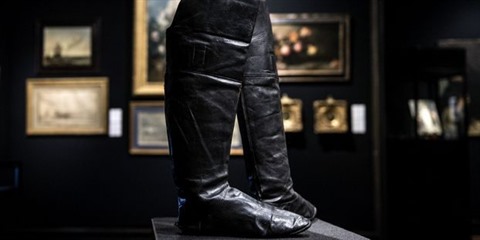 Cette paire de bottes, dite "à l'écuyère", de 48 cm de hauteur, en fin maroquin noir à semelles à petits talons, était estimée entre 50.000 et 80.000 euros.