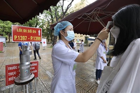 | Vérifier la température corporelle pour lutter contre le COVID-19 à Hanoï. |