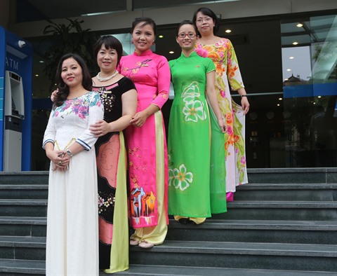 | L'élégance des femmes vietnamiennes en tunique traditionnelle (áo dài). |