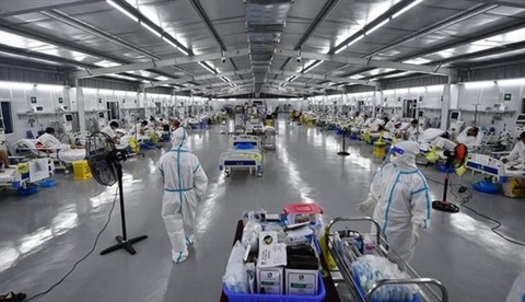 | Dans un hôpital du traitement des patients de COVID-19 à Binh Dong (Sud). |