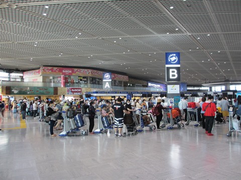 | Des Vietnamiens attendent à faire des formalités douanières à l'aéroport international de Narita, au Japon, avant de retourner au Vietnam le 25 mai. |