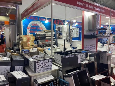 | Un stand de Vietbuild 2021, à Hô Chi Minh-Ville. |