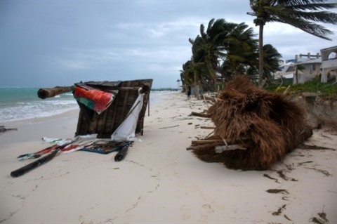 | Les dégâts provoqués par le passage de la tempête Zeta, le 27 octobre à Puerto Morelos, au Mexique. |
