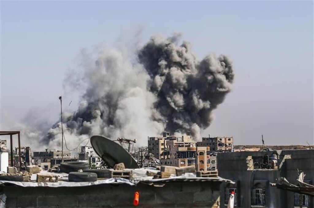 | De la fumée s'élève après une frappe aérienne israélienne dans la bande de Gaza. |