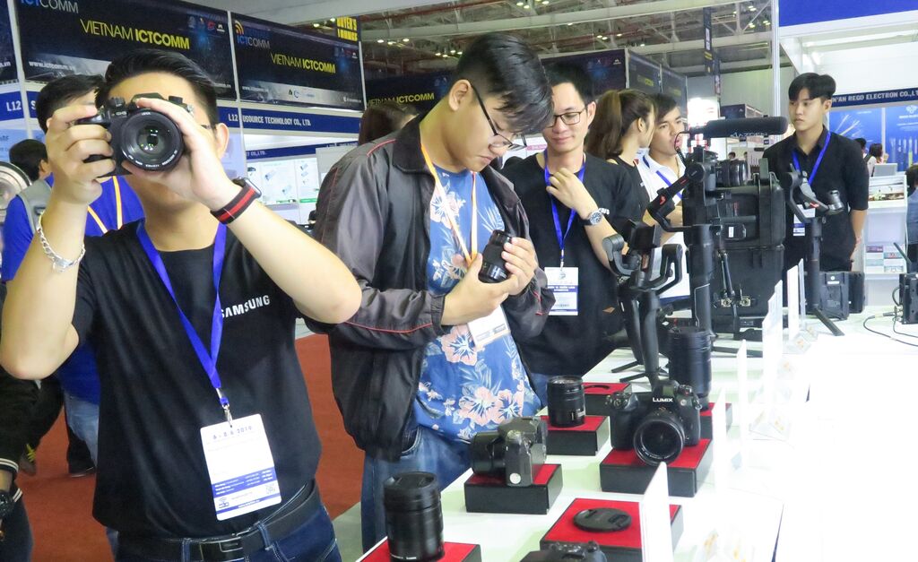 | Des visiteurs à l'exposition Vietnam ICT Comm et Telefilm en 2019 à Hô Chi Minh-Ville. |