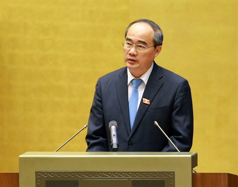 | Le président du Comité central du Front de la Patrie du Vietnam, Nguyên Thiên Nhân, présente le 20 mai à Hanoi le rapport de collecte des opinions des électeurs lors de la séance d'ouverture de la 9e session de l'Assemblée nationale. |
