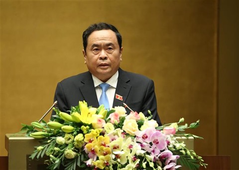 | Le président du Front de la Patrie, Trân Thanh Mân, s'exprime lors de l'ouverture de la 7e session de l'Assemblée nationale de la XIVe législature, le 21 octobre à Hanoï. |
