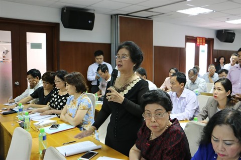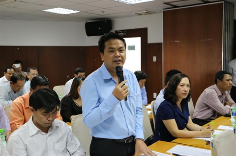 | Bui Thi Quy, directrice de la Sarl Côn Long My Phat, prend la parole lors du colloque. |