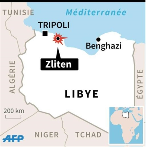 | Carte de Libye localisant Zliten,où au moins 45 personnes ont été tuées dans un attentat au camion piégé jeudi 7 janvier contre un centre de formation de la police. |