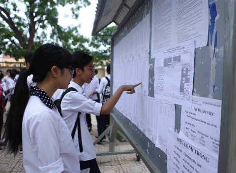| Des candidats cherchent leur salle d’examen au lycée Nguyên Gia Thiêu, Hanoi. Photo : Quy Trung/VNA/CVN |