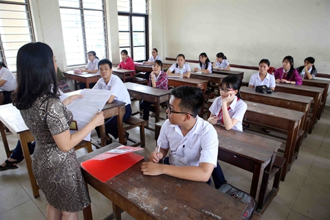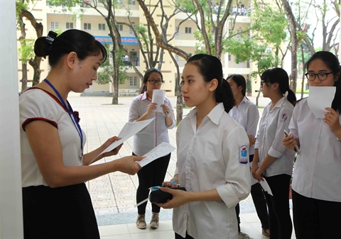 | Des élèves après l’épreuve de littérature, au lycée Viêt-Duc. Photo : Quy Trung/VNA/CVN |