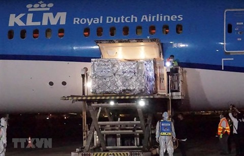 | Le lot de vaccin anti-COVID-19 d'AstraZeneca dans le cadre du mécanisme COVAX a été transporté à l'aéroport international Ninoy Aquino de Manille, aux Philippines, le 4 mars. |