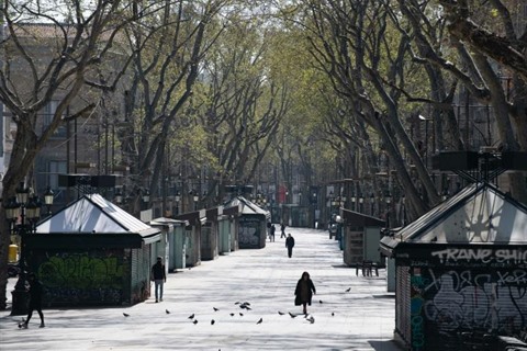 | Les Ramblas à Barcelone, quasi-déserts, le 19 mars. |