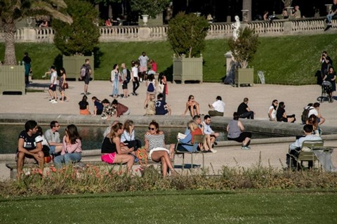 | Des personnes prennent le soleil au jardin du Luxembourg, le 30 mai à Paris |