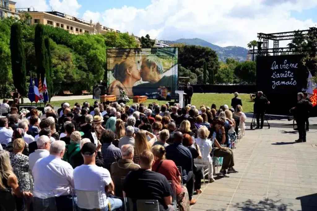 "Annie, vivre avec Ben, ce n'est pas facile. Mais Annie, tu le sais, vivre avec Ben, c'est vivre vraiment. Ben, vivre avec Annie, c'est inespéré. Mais Ben, tu nous l'as prouvé, vivre sans Annie, c'est tout simplement désespérant. C'est cela, l'amour dont vous nous avez éblouis", a salué le maire de Nice, Christian Estrosi.