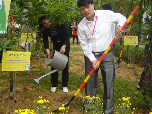 | Les entrepreneurs plantant des abricotiers au Centre culturel de Huyên Trân, ville de Huê. Photo : Phuong Mai/CVN |