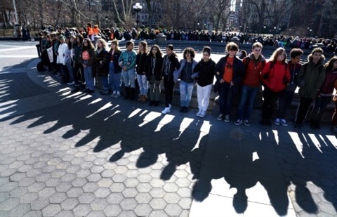 | Le première manifestation des élèves américains contre les armes, le 14 mars. |
