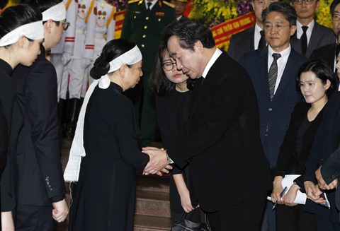 | Le Premier ministre sud-coréen Lee Nak Yeon partage la tristesse avec la famille du président Trân Dai Quang. |