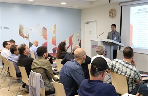 Organisé par le Service commercial du Vietnam en Israël et le groupe israélien BDO spécialisé en audit et conseils aux entreprises, le colloque a attiré les représentants de la Fédération des chambres de commerce israéliennes et 35 entreprises israéliennes spécialisées dans l'investissement, l'importation des vivres alimentaires, des aliments, des produits agricoles et aquacoles, des produits de consommation, du textile, des produits électroniques, des matériaux de construction, etc.