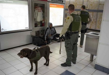 | La station Universal City de Los Angeles était quadrillée par les forces de l'ordre. |