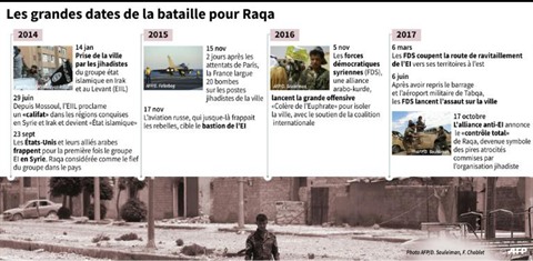 | Principales dates de la bataille pour le contrôle de la ville de Raqa en Syrie. |