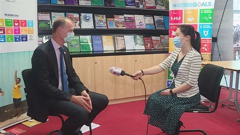 | Le représentant résident adjoint du Programme des Nations unies pour le développement (PNUD) au Vietnam, Patrick Haverman, au micro de la VNA. |