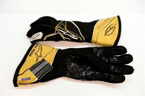 | Gants du pilote Romain Grosjean de l'écurie Haas, pour la nouvelle saison de F1, sur le circuit de Catalogne, à Montmelo, le 21 février. |