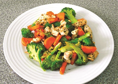 - Verser ensuite dans la poêle le reste d’échalotes et de gousses d’ail. Faire revenir, puis ajouter les morceaux de chou-fleur et de carotte. Sauter le tout rapidement. Saler, poivrer et ajouter le céleri et le poireau, la ciboule et l’aneth. Enfin, lier avec un mélange de tapioca et d’eau, en sautant le tout pendant quelques minutes.
