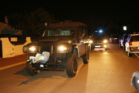 | Les véhicules du Raid à l'issue de l'assaut le 14 juin à Magnanville. |