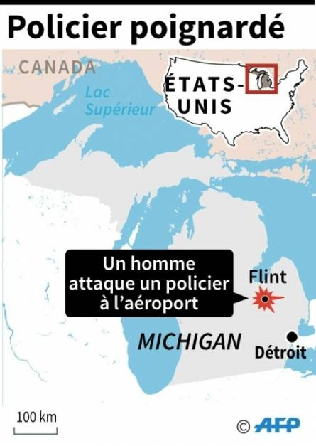 | Un policier a été poignardé le 21 juin à l'aéroport américain de Flint, dans le Michigan (Nord), les médias évoquant une possible piste "terroriste". |