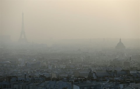 | Une épaisse brume de pollution recouvre Paris, le 11 mars 2014. |