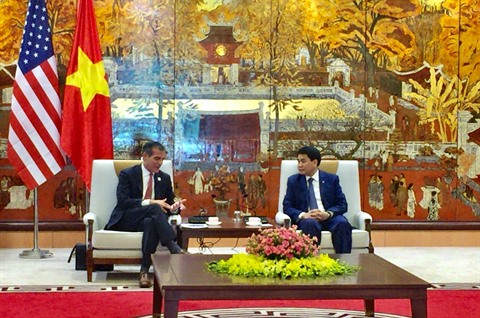 Le président du Comité populaire de Hanoï, Nguyên Duc Chung, a informé son interlocuteur américain des résultats marquant les 10 ans d’élargissement des limites administratives de Hanoï. Pour l’heure, la ville accélère la construction de l’autorité électronique, la création d'un environnement de start-up. Dans son processus de développement, la capitale vietnamienne se heurte à des défis, notamment la pollution, le traitement des déchets, les embouteillages. Il s’agit de questions où Los Angeles a de nombreuses expériences.