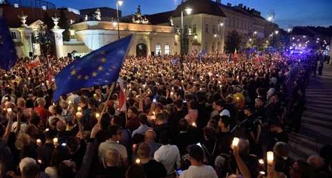 Manifestation contre une réforme du système judiciaire devant le palais présidentiel, le 18 juillet à Varsovie. Photo : AFP/VNA/CVN |