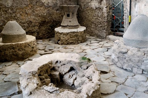 Le moulin était actionné à tour de rôle par six mules et un âne, qui sont morts piégés dans leur étable quand les cendres et la lave incandescente ont enseveli la ville.