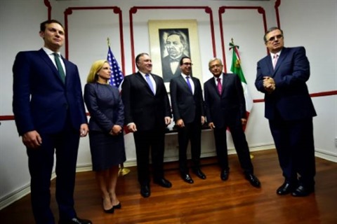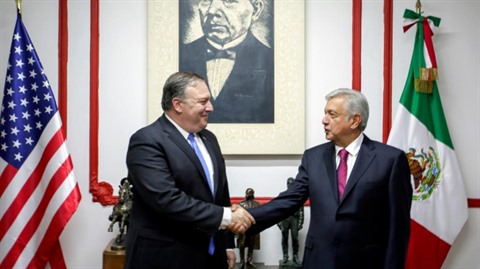 | Photo fournie par le service de presse de la présidence mexicaine de la rencontre entre le chef de la diplomatie américaine Mike Pompeo (gauche) et le président-élu mexicain Andrés Manuel López Obrador, le 13 juillet 2018 à Mexico. Photo: AFP/VNA/CVN |