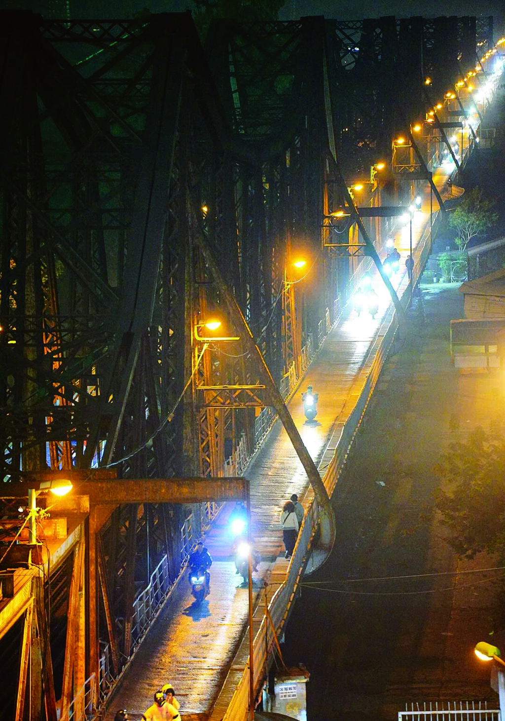 | Long Biên, premier pont en acier au-dessus du fleuve Rouge. |
