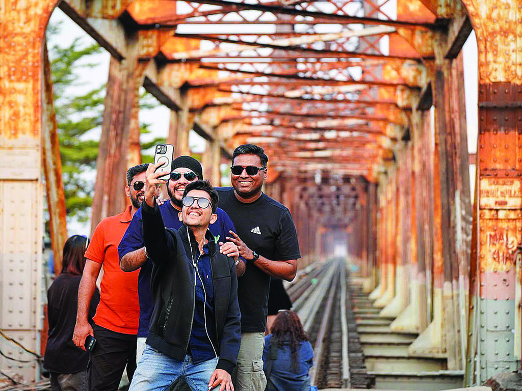 | Touristes cherchant à réaliser le plus beau selfie avec l'ouvrage. |