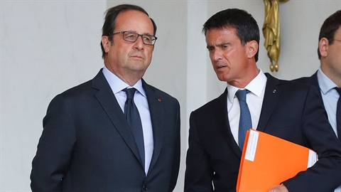 | Le Président Francois Hollande (gauche) et le Premier ministre Manuel Valls à l' |
