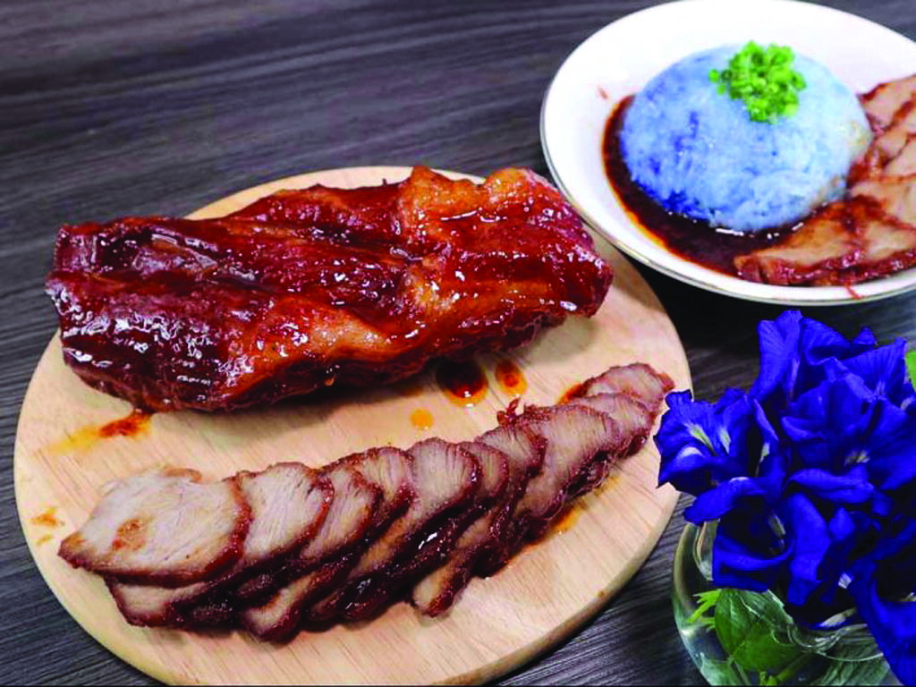 Le porc xa xiu est prêt. Il est servi avec du riz blanc, du banh mi (sandwich) ou avec des vermicelles de riz.