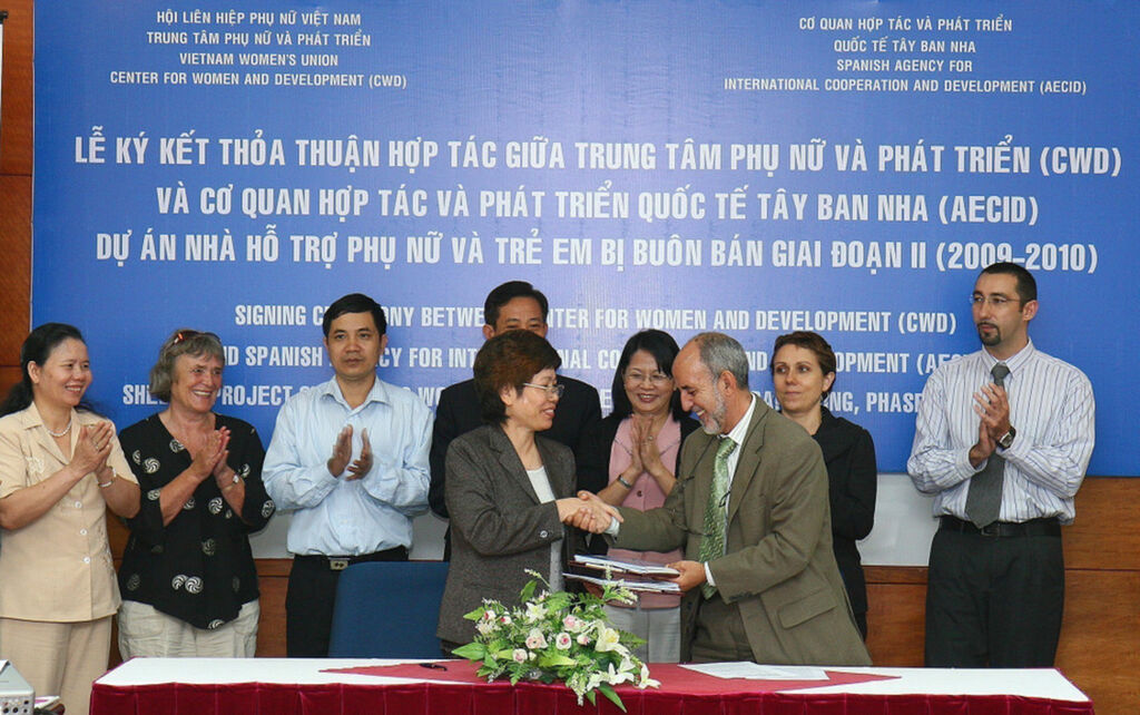 | Signature à Hanoï, le 24 février 2009, de l'accord de coopération entre le Centre pour les femmes et le développement (CWD) et l'Agence espagnole de coopération internationale pour le développement (AECID) pour soutenir la 2e phase (2009-2010) du projet de refuge vietnamien destiné aux femmes et enfants victimes de traite humaine. |