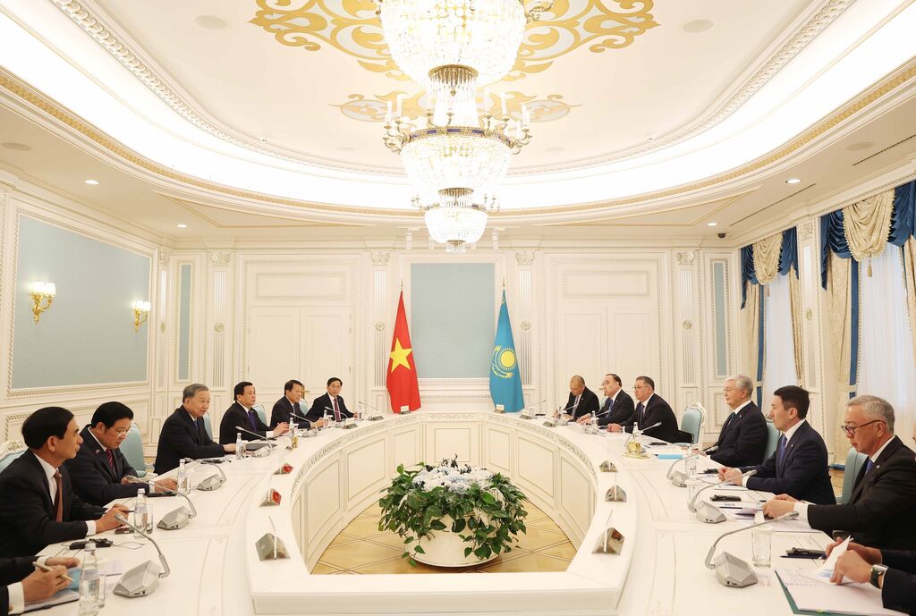 | Entretien entre le président kazakh Kassym-Jomart Tokaïev et le secrétaire général du Parti communiste du Vietnam, Tô Lâm. |