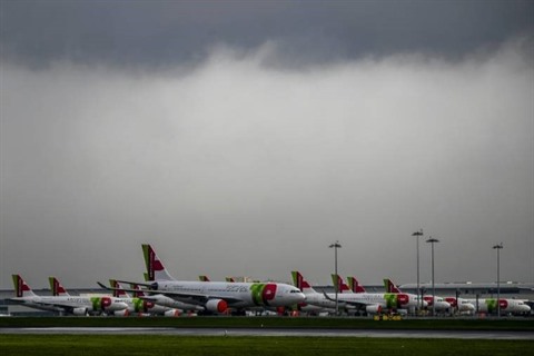 | Des avions de la compagnie aérienne portugaise TAP sur le tarmac de l'aéroport de Lisbonne le 9 décembre 2020. |