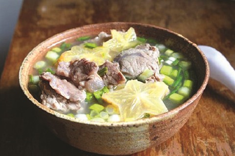 - Dans un faitout contenant de 400 à 500 ml d’eau portée à ébullition, faire cuire doucement les morceaux de travers jusqu’à ce qu’ils soient bien cuits. Ajouter les caramboles, 1 à 2 cuillères à café de sel, de hat nêm, de nuoc mam et de sucre. Laisser cuire encore pendant environ 10 minutes.