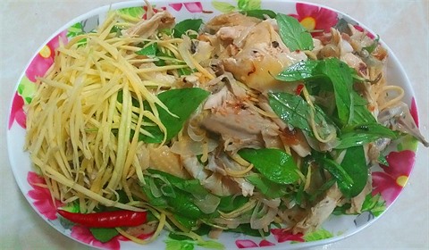 - Mélangez les cubes de poulet avec une cuillère à soupe (15 ml) d’eau, la sauce de soja, le gingembre, la coriandre moulue, le poivre et la fécule de maïs. Laissez mariner de 10 à 15 minutes. Dans un autre bol, mélangez le bouillon, la sauce de poisson, le jus de lime et le sucre jusqu’à ce que celui-ci soit dissous.