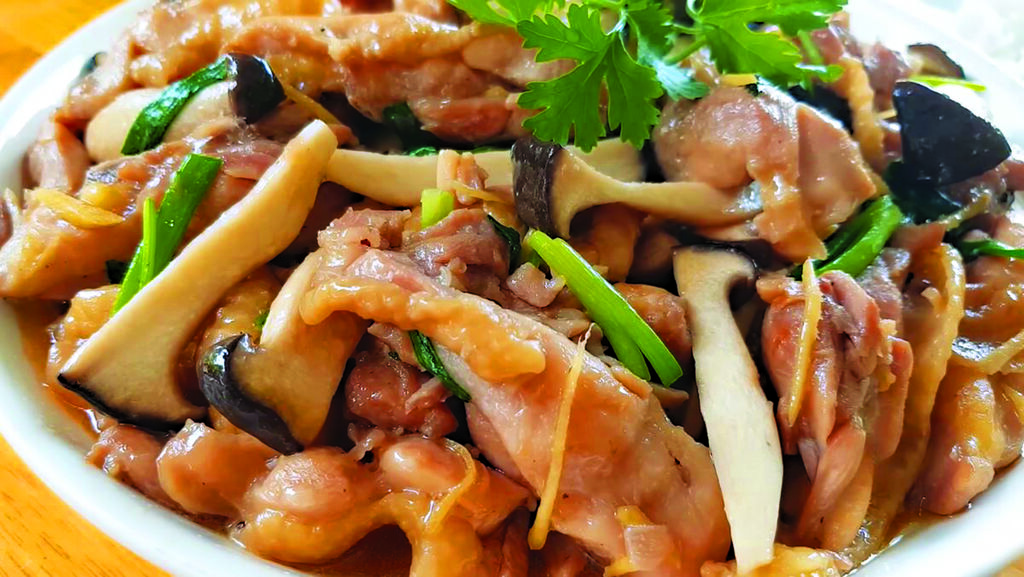 - Mettez le poulet dans un bol et marinez-le avec 2 c.à.s de nuoc mam, 1 c.à.c de fond de volaille, 1/3 c.à.c de sel, 1 c.à.s de sucre, 2 c.à.s de sauce aux huîtres, 1/3 c.à.c de poivre moulu, 2 c.à.s d’oignon violet haché et un peu de la julienne de gingembre.