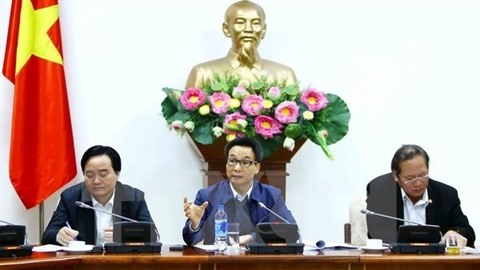 | Le vice-Premier ministre Vu Duc Dam (centre) lors de la réunion. |