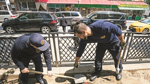 | Des employés du service de la santé placent de la glace carbonique dans des terriers de rats, dans un parc de New York, le 7 juin. |