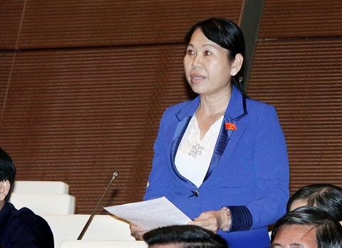 | Une députée de la province de Hâu Giang (Sud), lors d'une séance de questions - réponses de la 9e session de l'Assemblée nationale de la XIIIe législature, en juin à Hanoi. |