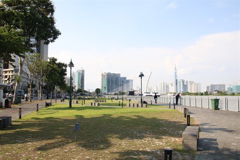 | Un espace piéton est ouvert le long de la rivière Saigon (1er arrondissement, Hô Chi Minh-Ville). |