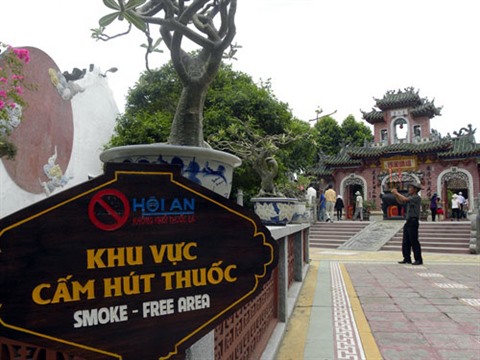 | Enseigne d’interdiction de fumée dans une zone touristique à Hôi An, province de Quang Nam (Centre). |